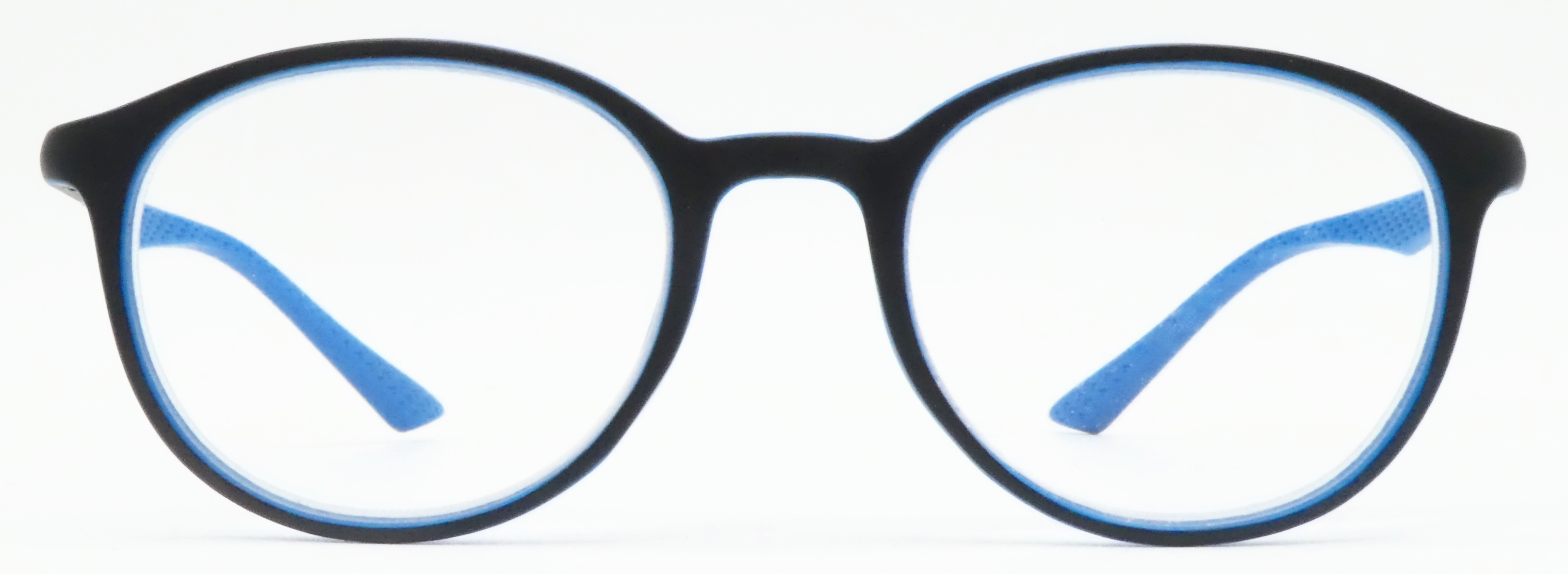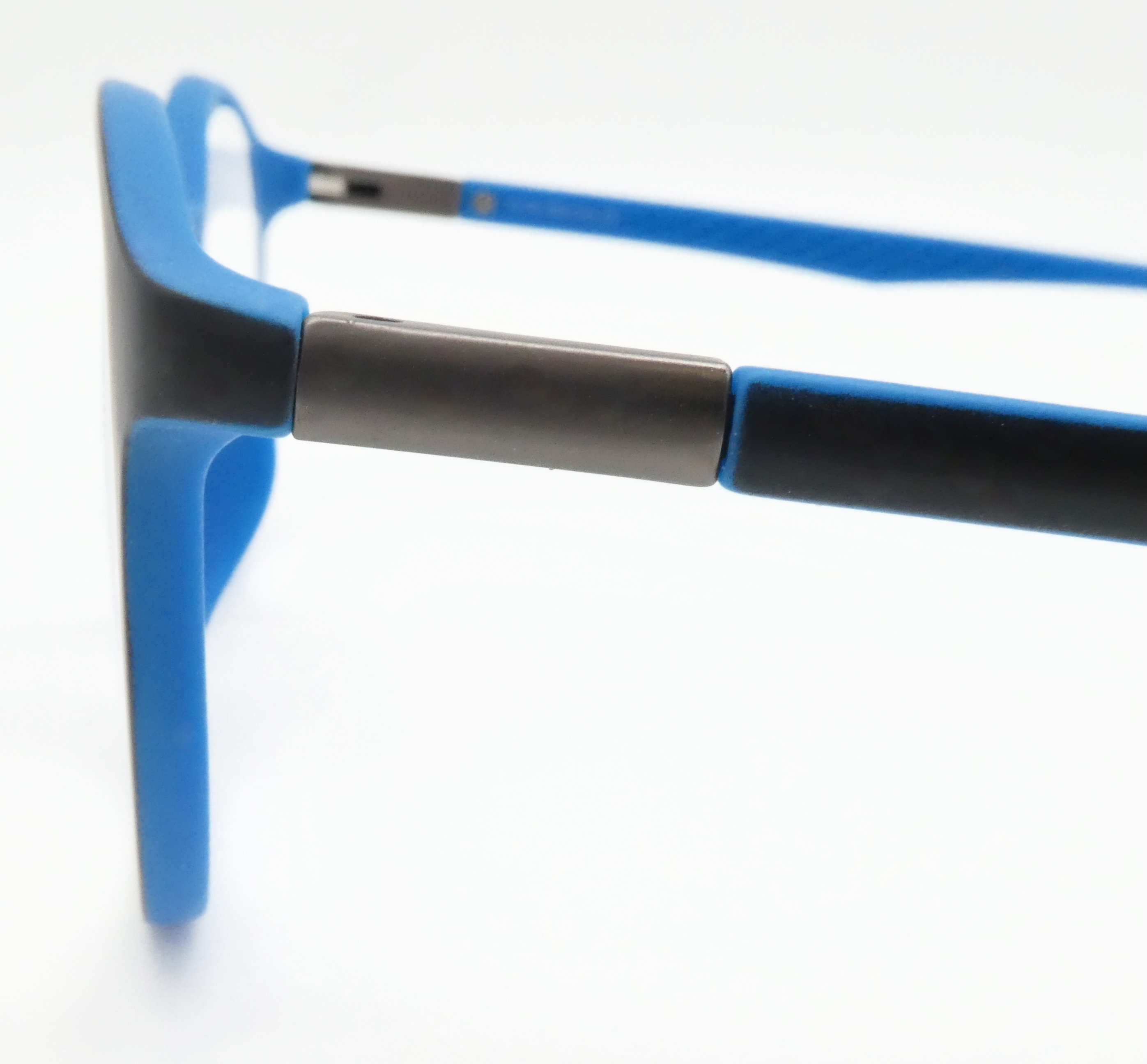 Mittelteil- und Bügelaußenseite schwarzmatt, Innenseiten mittelblau.