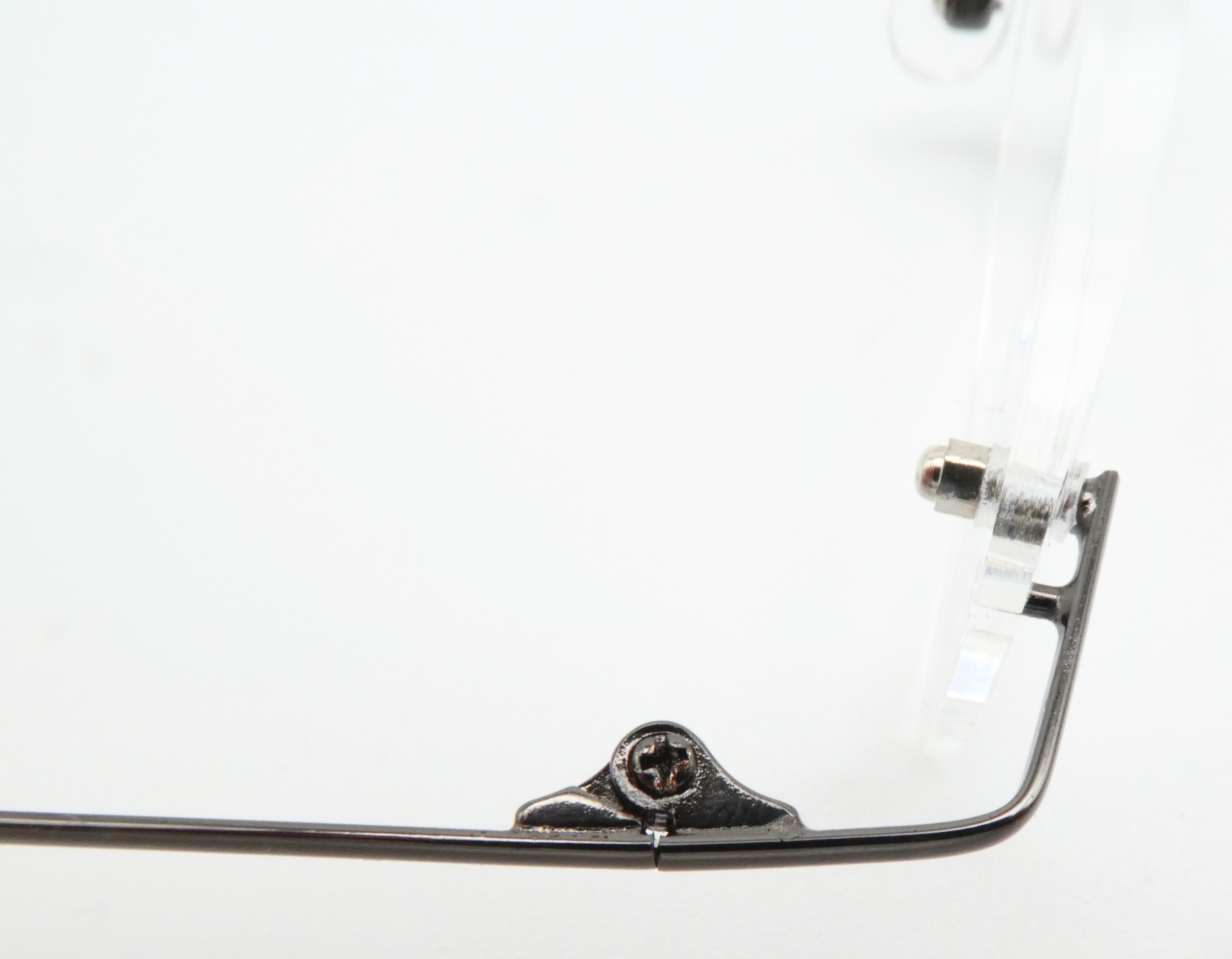 Die Kunststoffgläser sind mit den Bügeln und Brücke verschraubt.