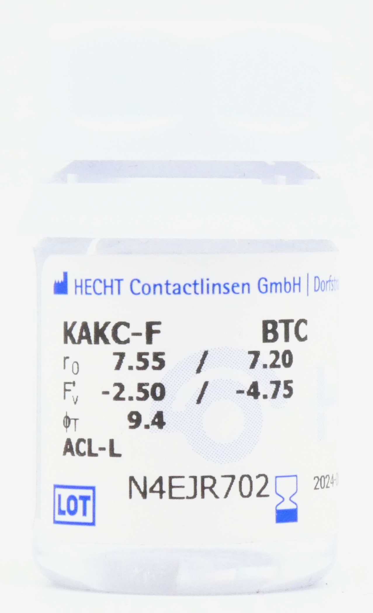Die Hecht KAKC F - BTC ist eine bitorische compensierende formstabile Keratokonus Kontaktlinse bei mittleren bis hohen Hornhautastigmatismen. Die torische Rückfläche gleicht die torische Vorderfläche der Hornhaut aus, hier mit einer zum Rand besonders flachen Geometrie. Die torische Vorderfläche gleicht den entsprechenden Wert der Rückfläche aus, somit wirkt diese Kontaktlinse sphärisch. Die Hecht KAKC - F BTC erzielt einen optimalen Tragekomfort durch den Randdickenangleich, der eine einheitliche Randdicke erzielt.
