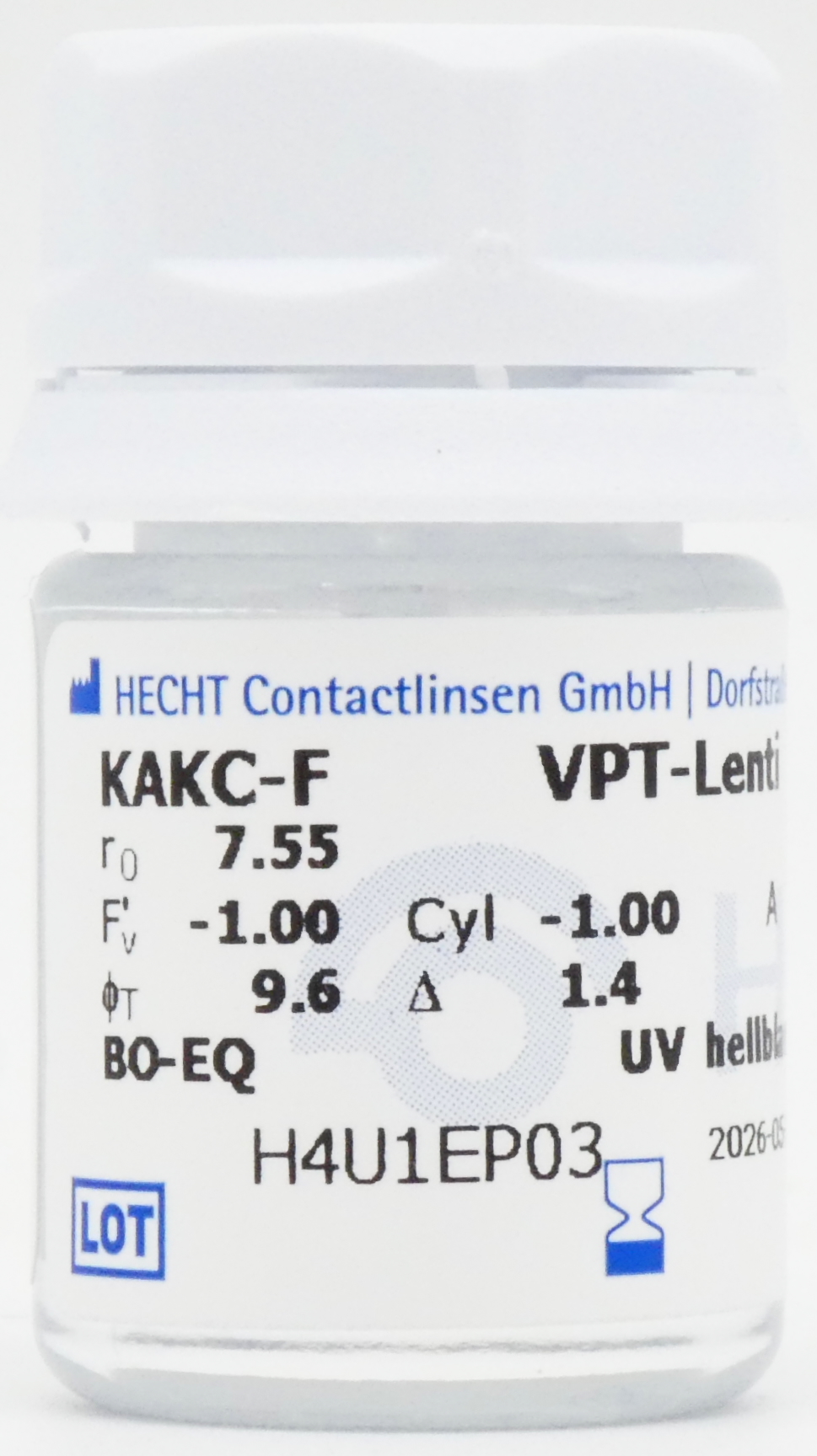 Die Hecht KAKC-F - VPT lenti ist eine vierkurvige formstabile Keratokonus Kontaktlinse mit einer vorderprismatischen torischen Fläche und verblendetem Prisma. Die Aufgabe der KAKC-F - VPT lenti ist, einen Astigmatismus, der nicht von der Hornhaut herrührt, sondern von den anderen optischen Medien des Auges, auszugleichen. Die Hecht Keratokonus Linse KAKC-F - VPT lenti hat eine vierkurvige rotationssymetrische Rückfläche mit einer torischen Vorderfläche. Die Rotation der Kontaktlinse auf dem Auge wird durch die neue Herstellungstechnik verhindert, indem ein zusätzliches Prisma nur auf die vorderoptische Zone begrenzt ist. Die Dickenveränderung ist dadurch sehr gering. Es ergibt sich eine einheitliche Randdicke im gesamten Linsenumfang, die entscheidende Vorteile im Sitzverhalten und Tragekomfort mit sich bringt.