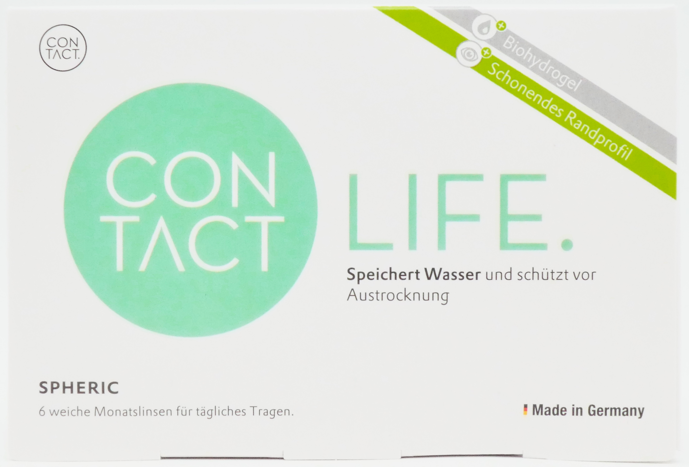 Die Wöhlk Contact life spheric ist eine Monatslinse aus einem besonders verträglichen Bio-Hydrogel Material. Sie besitzt eine hervoragende Speicherung der Feuchtigkeit, eine hohe Ablagerungsbeständigkeit und ein schonendes Randprofil der Linse, das den Tränenfilmaustausch begünstigt und die Einflußnahme auf die Bindehäute minimiert. Dadurch ist sie hervorragend geeignet für Linsenträger, die Tragekomfort Probleme mit Ihren Silikon Hydrogellinsen haben.