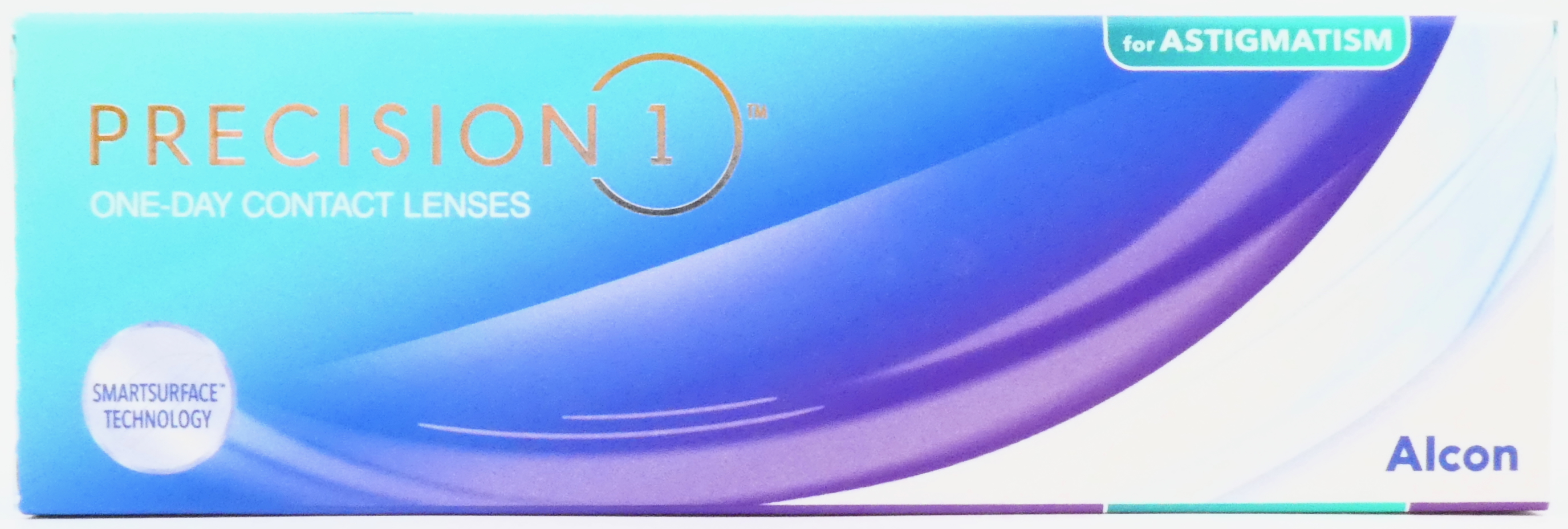 Alcon Precision 1 for Astigmatism ist die neueste torische 1-Tages-Kontaktlinse von Alcon. mit einer einzigartigen Benetzungstechnologie. Diese neue SMARTSURFACE™-Technologie sorgt für eine ultradünne, hochleistungsfähige Feuchtigkeitsschicht auf der Kontaktlinsenoberfläche, mit einem Wassergehalt von mehr als 80 % an der äußersten Oberfläche. Damit wird der Tränenfilm stabilisiert, und wirkt somit Hauptursachen für einen Drop-out, z. B. schlechtem Sehen, entgegen. Mit Komfortbevel ( Komfort Randabflachung) und Handhabungs- Tönung.