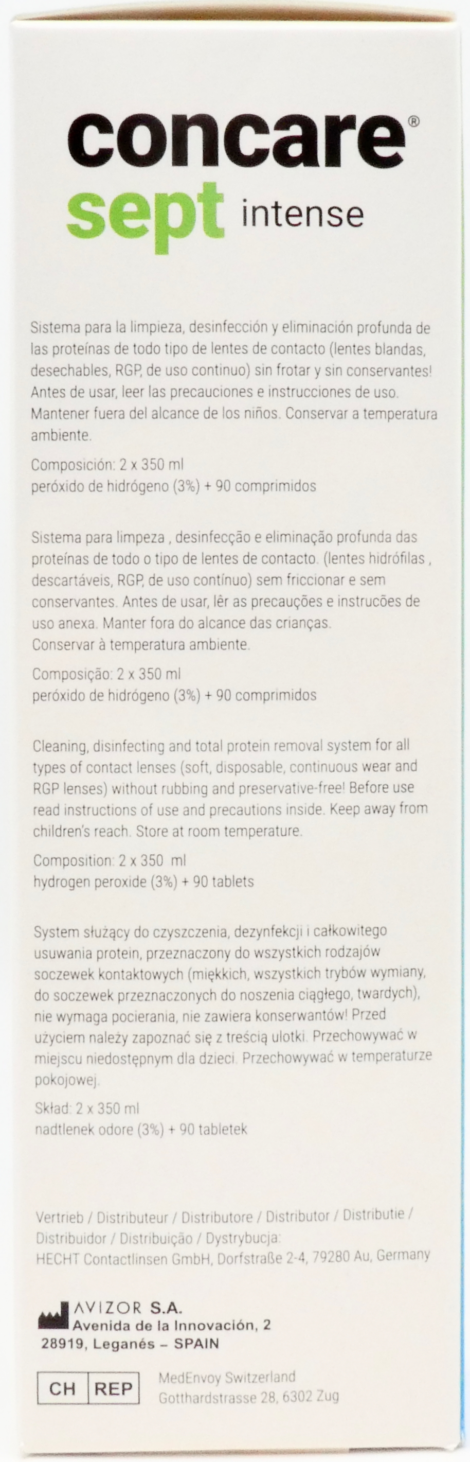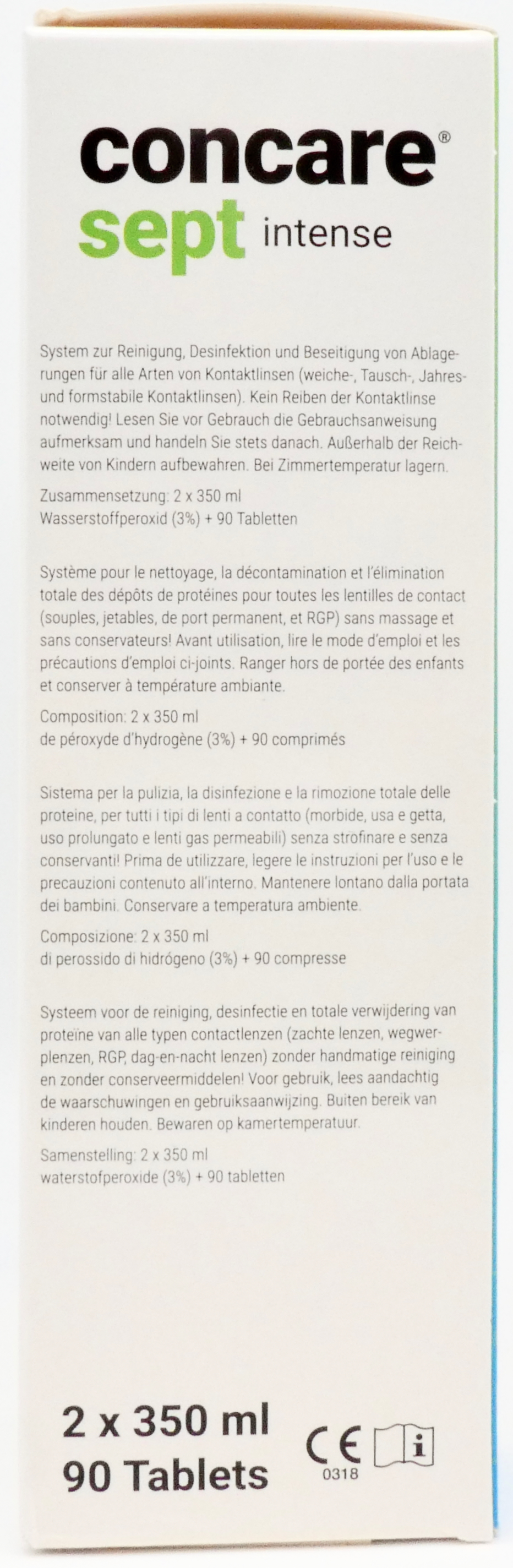 Hecht concare® sept intense multipack, kraftvolle 3% Peroxidreinigung mit integrierter Proteientfernung für alle formstabilen Kontaktlinsen, weichen Linsen und vor allem Ortho K Linsen ( Nachtlinsen ).